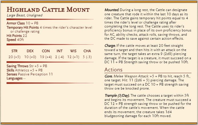 They are the go-to mount option among Norn society and have fully replaced horses. In war, the sight of 300 Viking warriors charging forth astride a bellowing highland cattle is a common and terrifying sight.