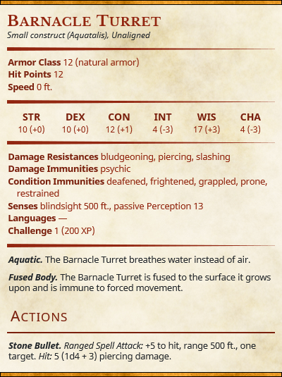Bonus Creature/Trap – Barnacle Turret