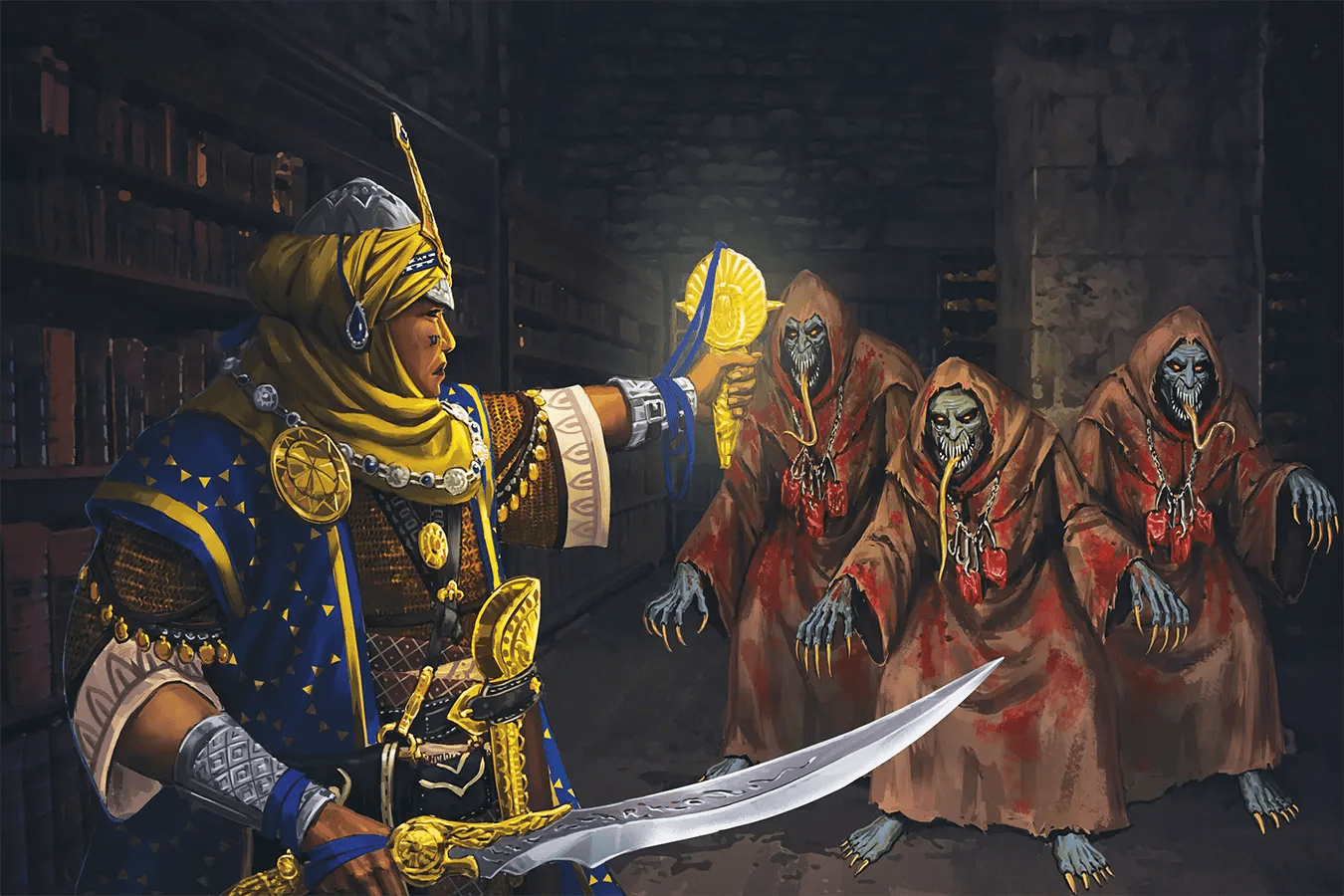 25 Research Points: The PCs learn that the Gauntlight requires a living creature to anchor its light and that the activation of the weapon kills the creature. Having spent such an extended period of time in the Library, 3 surviving Cult of the Clanker ghouls happen across the party and attack them.