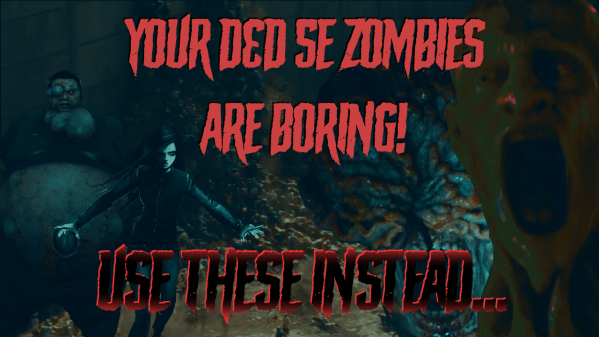 Here, you can find the stat blocks for 5 types of Zombie that are much more interesting, much more deadly and much more recognisable than the standard 5th edition options currently available!